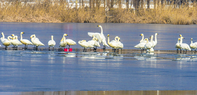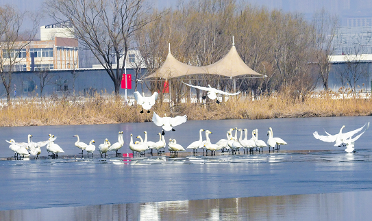 2022年2月24日,初春,隨著氣溫不斷地回升、冰層融化,位于山西省太原市的山西師范大學毓秀湖迎來新年第一批白天鵝。當日,共有70余只白天鵝到此棲息。據了解,毓秀湖面積近300畝,沿湖以垂柳蘆花為主,水中栽藕植蓮,荷花濯濯,風光秀美。近年來,隨著毓秀湖生態環境的不斷改善,許多候鳥到此棲息越冬,湖內有野鴨、天鵝、白鹡鸰、黑翅長腳鷸、澤鷸、戴勝、翠鳥、金翅雀、葦鶯、池鷺等30多個種類在此停留,成為學校最靚麗的景色線。(中國網 劉曉 通訊員 饒二保)