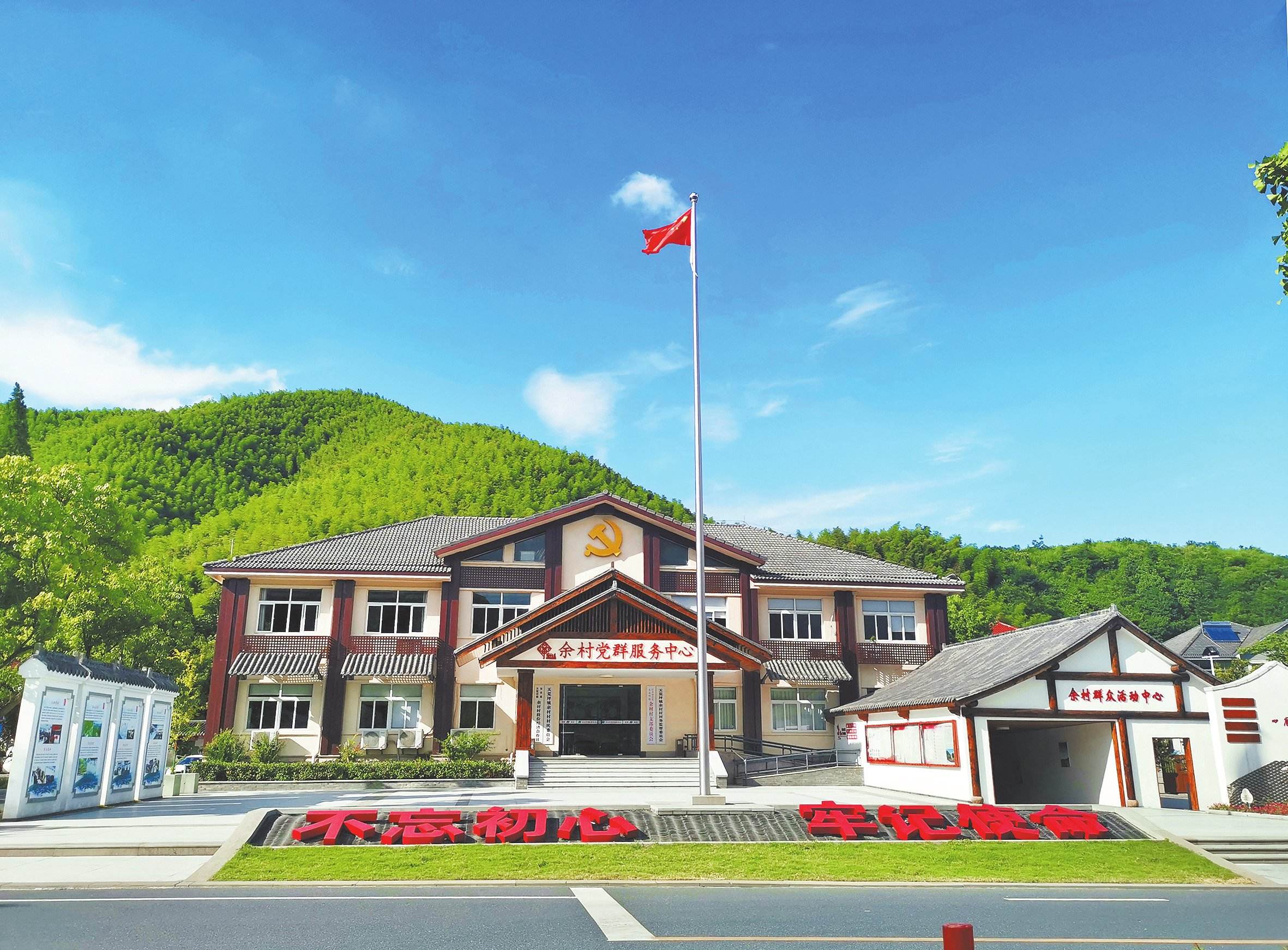 浙江省安吉縣天荒坪鎮余村,三面青山環繞,村口一塊石碑矗立,刻著“綠水青山就是金山銀山”。
