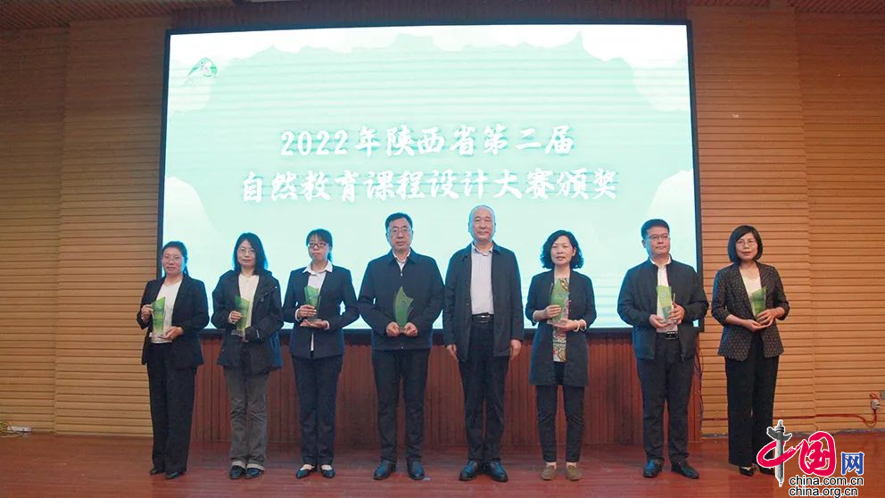 為陜西省第二屆自然教育課程設計大賽獲獎單位頒發獎杯、證書