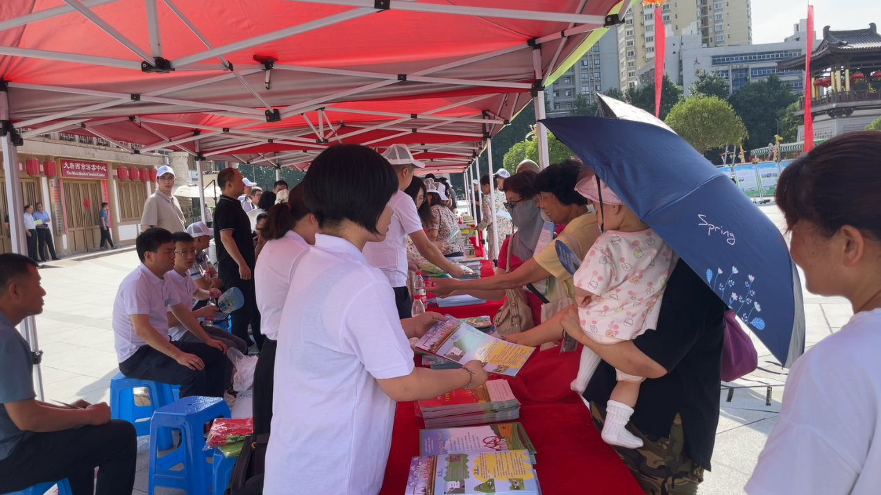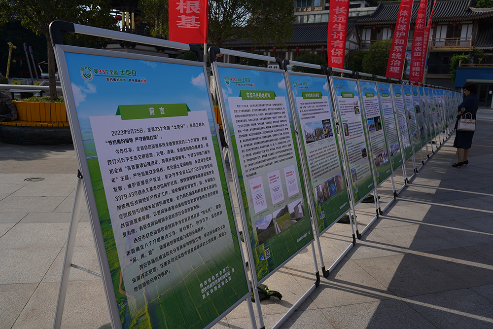 現場約30塊展板介紹了全省自然資源系統在耕地保護、節約集約用地、“三區三線”劃定等方面的工作情況,以及西安鐵路運輸法院依法保護土地資源的典型案例等。數十名工作人員在廣場兩側向來往群眾發放宣傳資料并現場解答問題。