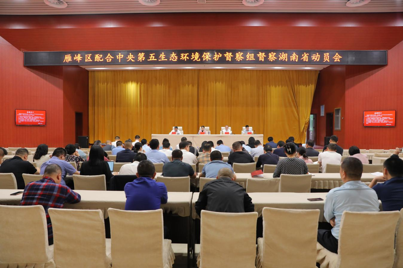 5月9日上午,在中央第五生態環境保護督察組督察湖南省動員會、衡陽市貫徹落實中央第五生態環境保護督察組督察湖南省動員會相繼召開后,湖南省衡陽市雁峰區立即響應,緊接著召開配合中央第五生態環境保護督察組督察湖南省動員會議。雁峰區委書記王燕出席會議并講話,她強調,要深入學習貫徹習近平生態文明思想,以高度的政治自覺貫徹中央、省委和市委的決策部署,全力配合做好督察各項工作,奮力譜寫新時代生態文明建設的雁峰新篇章。區委副書記、區長魏春生主持會議。