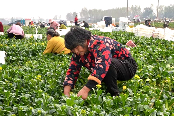 據了解,河南瑞彩農業科技有限公司以孫彰村為中心,流轉土地2000畝發展蔬菜產業,輻射周邊5個行政村,主要種植6大類新鮮蔬菜,核心產品為優質廣東菜心,日產量達5萬斤。
