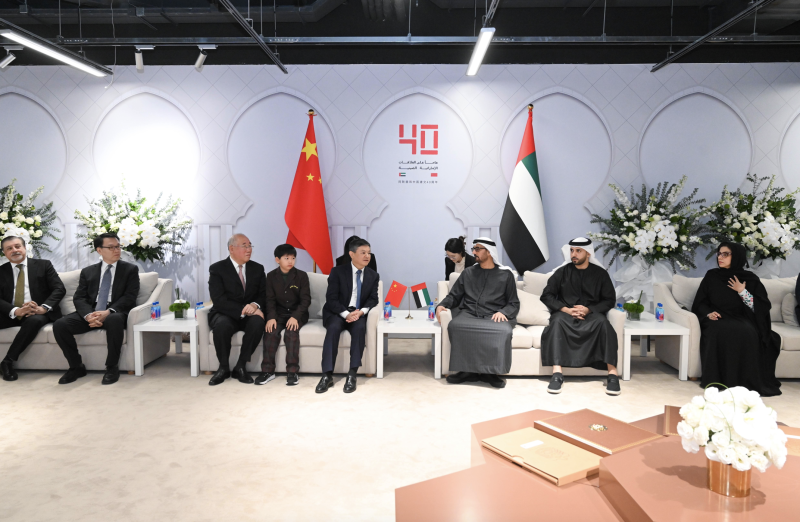 頒授儀式結束后,黃潤秋一行還參觀了阿聯酋駐華使館舉辦的中阿建交40周年展覽。