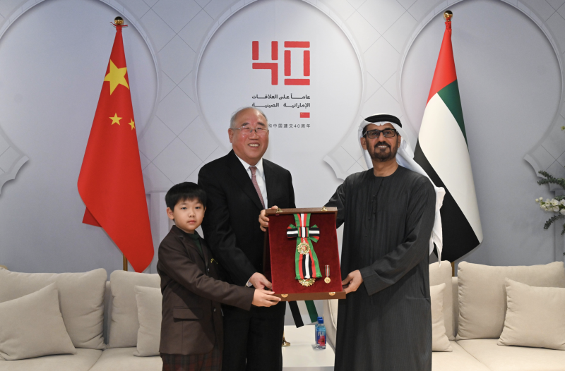 2011月30日,阿聯酋駐華使館舉行“扎耶德二世一等勛章”頒授儀式,阿聯酋駐華大使哈馬迪代表總統穆罕默德為中國生態環境部部長黃潤秋、原中國氣候變化事務特使解振華頒授勛章,以表彰他們為聯合國氣候變化迪拜大會(COP28)取得成功所做的突出貢獻。