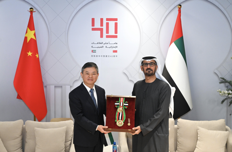生態環境部部長黃潤秋出席阿聯酋“扎耶德二世一等勛章”頒授儀式并與阿聯酋駐華大使哈馬迪會談