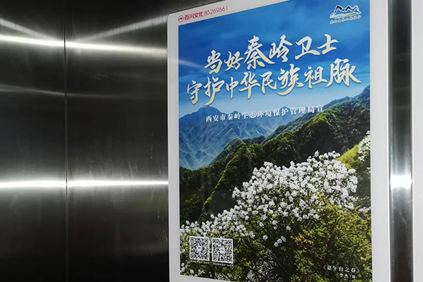 西安市未央區風景御園社區電梯內展示的“秦嶺生態環境保護”宣傳海報