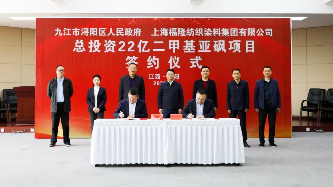 近日,江西省九江市潯陽區人民政府與上海福隆紡織染料集團有限公司舉行總投資22億元的二甲基亞砜(DMSO)項目簽約儀式,標志著潯陽區在打造石化化工產業鏈和循環經濟領域邁出關鍵一步。區委副書記、區長周榮卿與市駐滬辦主任王后強共同出席并見證簽約,區領導戴勇與上海福隆集團總工彭德新共同簽約。