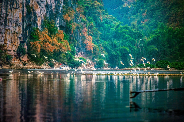 漓江陽朔段白鷺翻飛。陽朔縣漓江景區公司供圖