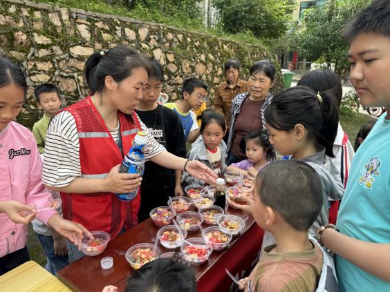 活動當天,孩子們在社工和志愿者的指導下,學習制作傳統消暑美食——冰涼粉。從調配原料到裝飾成品,每一個環節都凝聚著孩子們的用心與創意。義賣攤位前,小攤主們熱情吆喝,向過往村民介紹自己的作品,吸引了許多群眾駐足購買?,F場歡聲笑語不斷,既鍛煉了孩子們的溝通能力,也讓公益的種子在他們心中生根發芽。