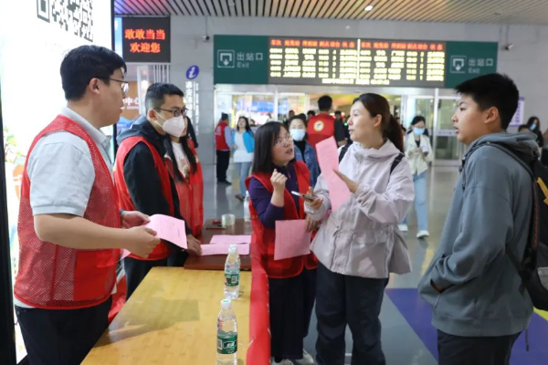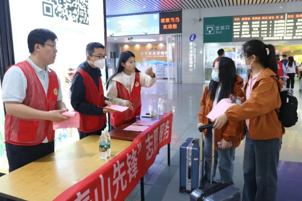 正值“五一”黃金周假期,“泰山先鋒”志愿服務總站聯合山東省泰安市岱岳區委辦公室、山東外貿職業學院,走進泰安高鐵站、泰山天平湖游客中心,開展“青春志愿服務領航‘泰山先鋒’在行動”志愿服務活動。