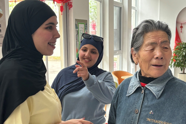 參觀學習后,留學生們與養員老人們在養護院活動室進行了親切互動,現場氣氛熱烈,頤養中心老人們的臉上洋溢著喜悅幸福的笑容?;咏Y束后,留學生們與老人們進行了親切交談,傾聽老人們年輕時的故事,敬仰之情溢于言表。老人們對留學生們殷切囑咐道:“你們來自世界各地,不遠萬里來到中國學習,希望你們在學習專業知識的同時也能多學習了解博大精深的中國文化。并希望將來你們學成后,能將你們在中國的所見所聞告訴更多的人,促進中外交流”。
