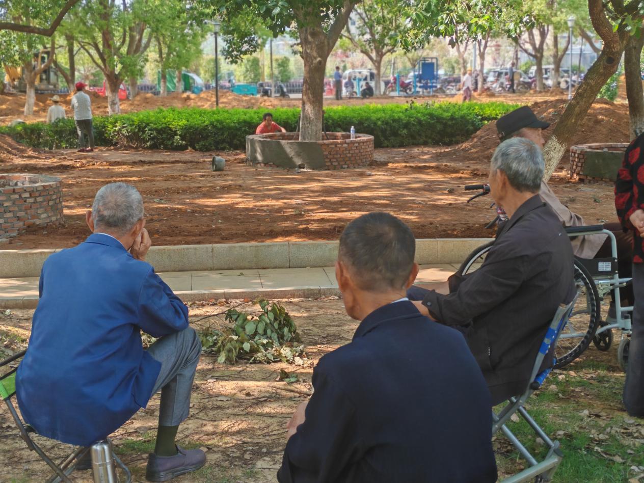 公園繁茂的香樟樹下,民間二胡樂隊正在演奏,吸引不少市民駐足聆聽。各類便民小商販規范經營,吆喝聲、歡笑聲交織,構成了熱鬧非凡的生活場景。公園另一側,工人們正在忙碌,呈現出另一番熱火朝天的施工景象。