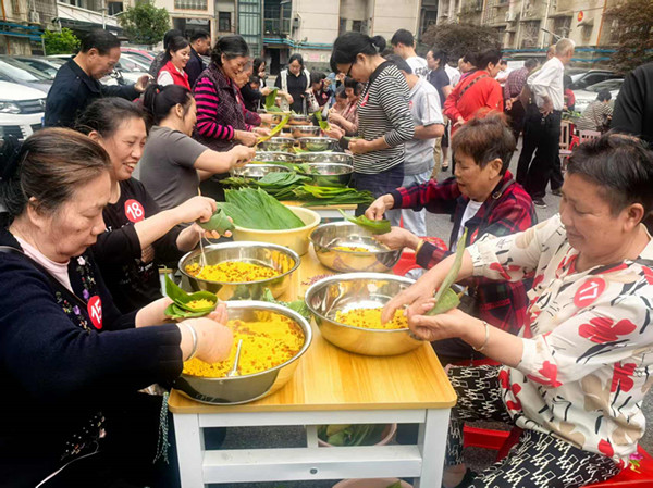 端午節是中華民族重要的傳統節日,蘊含著深厚的文化底蘊和民族精神??h新時代文明實踐中心、長鋪鎮政府及大公坪社區把開展端午節送愛心活動與加強文明城市建設結合起來,努力營造文明祥和的節慶氣氛。做好糯米、紅豆、粽葉、棉線等物資準備工作,組織社區居民志愿者舉辦包粽子比賽,讓群眾成為節日活動的主角。在規定的時間內,以“速度、數量、質量、美觀”作為評判標準,看哪位參賽者的棕子包得又快又好,在10分鐘的比賽中,參賽選手比速度、比美觀,手法從生疏到逐漸熟練,一個個粽子形狀雖各不相同,但都不露餡撒漏、包扎嚴密、大小均勻、形狀規則,活動氛圍高潮迭起,共包制粽子1000余個,現場歡聲笑語不斷。賽后由居民代表評出前一、二、三等獎,獲獎者和參與者均發放相應獎品及小禮品?;顒咏Y束后,工作人員將粽子和慰問品贈送給轄區孤寡老人及環衛工人。通過親手包粽子比賽,參與者端午節包粽子的習俗有了深入解,鄰里和睦氛圍得到增強,豐富了社區居民的精神文化生活。(湖南省綏寧縣 王燕 )