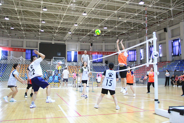 6月13日下午3點半,勝利分公司兵羽館熱鬧非凡,氣排球協會每周五的訓練課如期舉行,員工們在教練的帶領下盡情揮灑汗水。