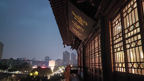 重陽節登樓觀景是流傳已久的民俗,如今更顯溫情暖意。華燈初上,潯陽樓燈火璀璨,與長江夜色交相輝映。樓內茶香裊裊,市民圍坐品飲本地清茶;憑欄遠眺,江風拂面,可見江帆點點、兩岸燈火,一派祥和景致。