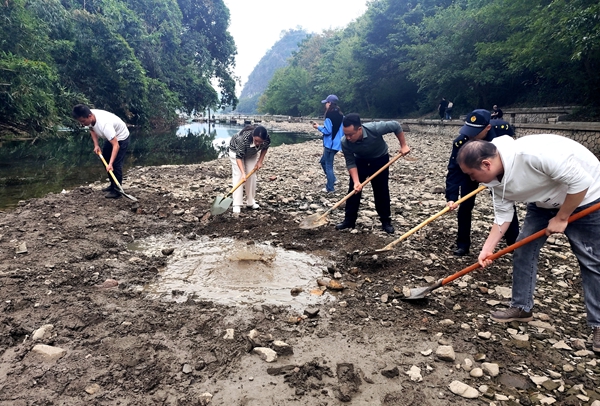 漓江是大自然恩賜桂林的一塊瑰寶,愛護漓江、保護漓江是我們每一個桂林人的光榮使命。10月29日,疊彩區城管局(漓管辦)組織執法力量會同漓江保護志愿者們對前期非法挖寶人留下的大量坑洞進行回填。大家揮鍬鏟土、不辭辛勞,經過4個多小時的連續奮戰,漓江螞蝗洲附近河床已恢復原貌。