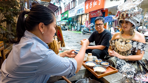同樣,在福利鎮畫扇傳承人莫云忠的工作坊,非遺技藝正轉化為可感知、可帶走的記憶。莫云忠堅持在單層宣紙上創作,以保留國畫水墨交融的獨特韻味?!皣H學校的師生和外國友人是這里的???,他們不僅來參與互動式體驗,更樂于將這份獨特的中國文化‘帶回家’,不少人還會在社交平臺分享創作過程,成了陽朔非遺的‘海外宣傳員’?!?/p>