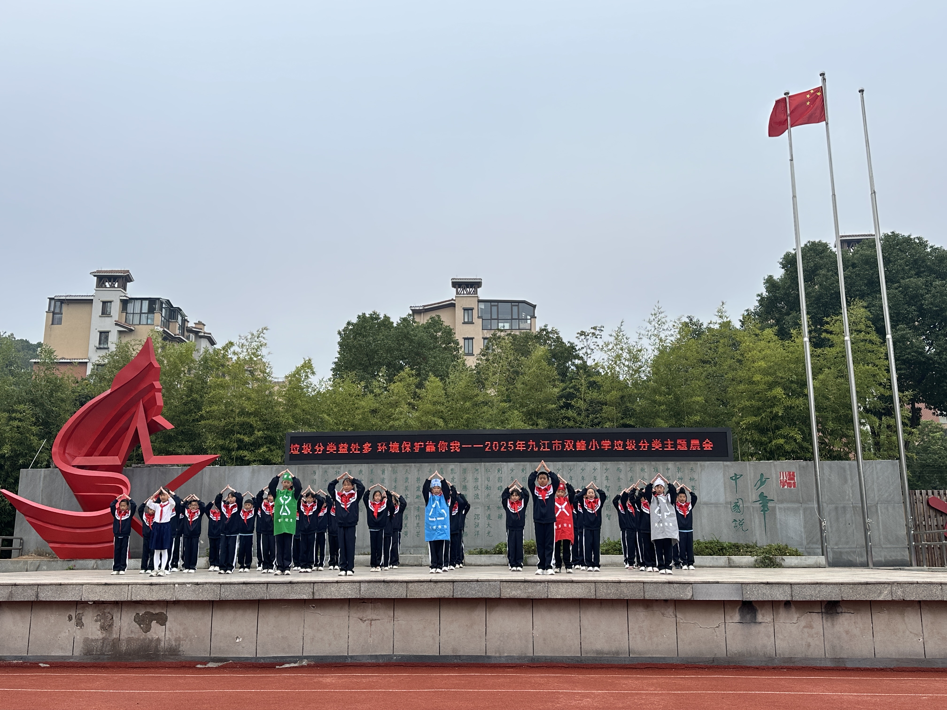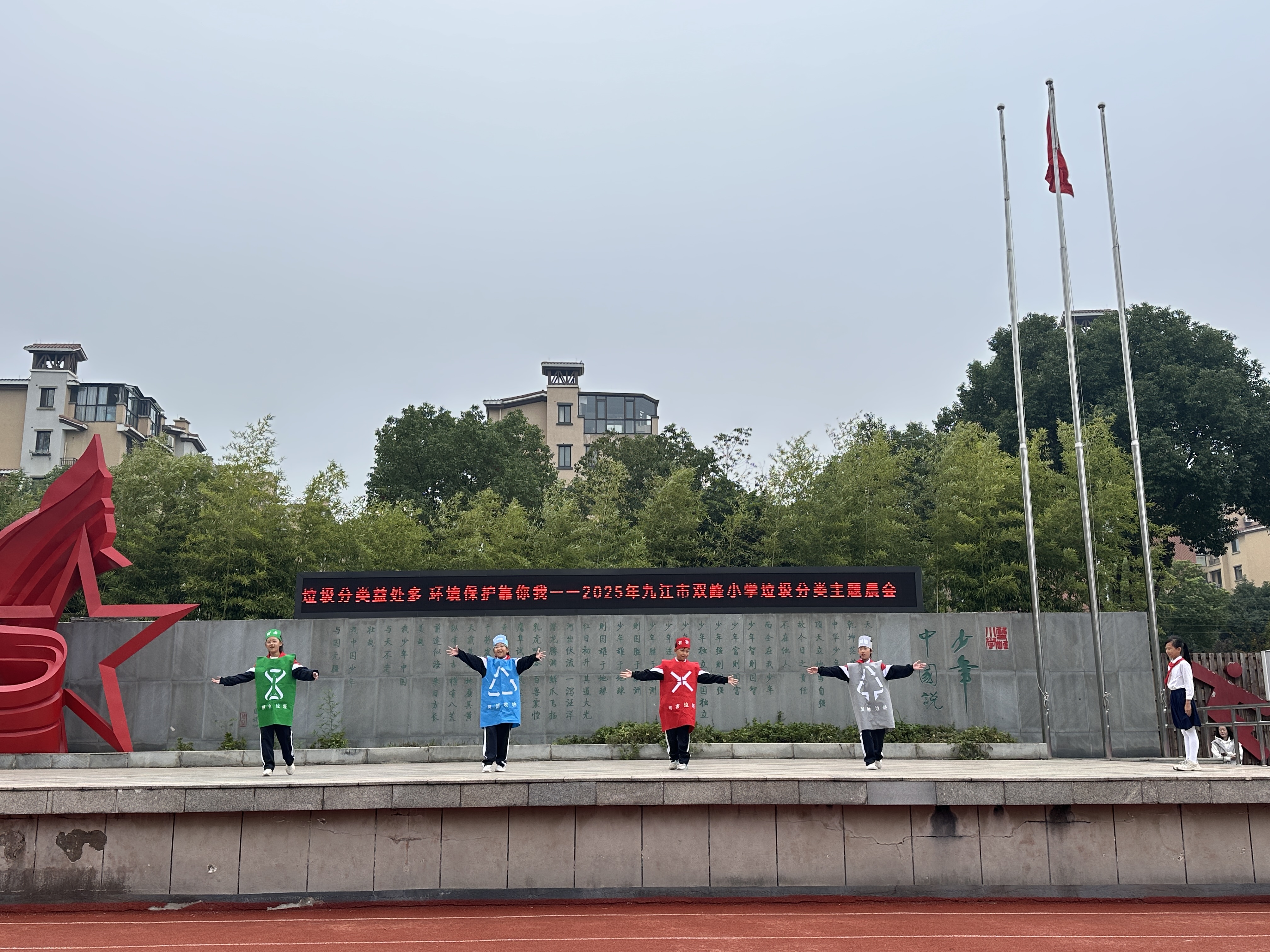 近日,九江市雙峰小學五(10)班主持了一場以“垃圾分類益處多,環境保護靠你我”為主題的晨會活動,通過情景劇、手勢舞等形式,向全校師生普及垃圾分類知識,倡導文明生活新風尚。