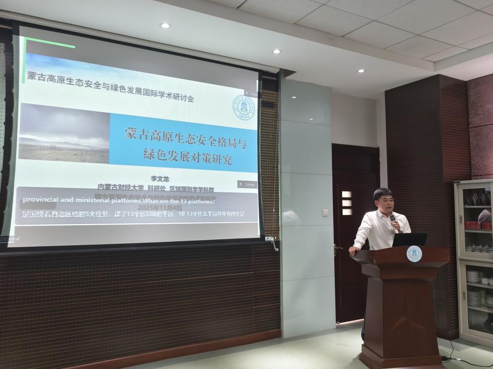 蒙古高原生態安全與綠色發展研究重點實驗室負責人李文龍教授介紹了實驗室階段性研究成果,包括蒙古高原生態狀況動態監測數據庫建設、綠色發展評價指標體系構建等。結合各位專家報告內容,他明確實驗室未來將聚焦中蒙生態合作、綠色技術轉化等方向,持續為區域生態安全與綠色發展提供科研支撐。