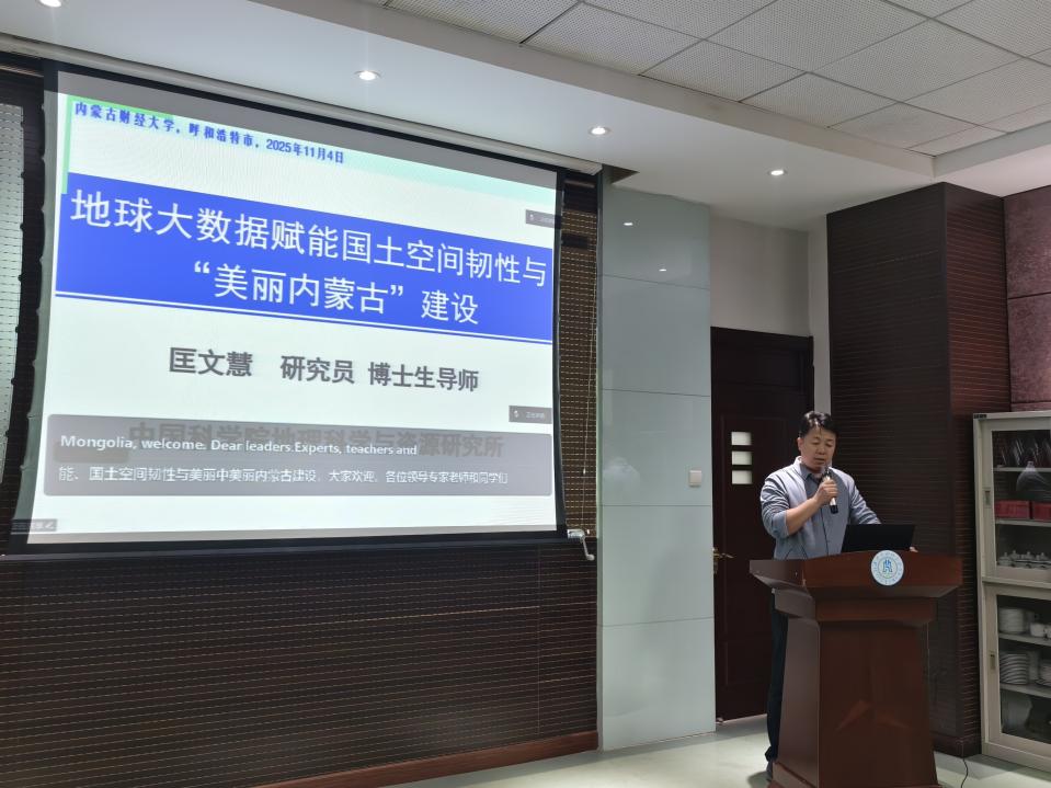 中國科學院地理科學與資源研究所匡文慧研究員則聚焦技術賦能生態治理,分享地球大數據在國土空間監測、城市韌性建設中的應用成果。針對“美麗內蒙古”建設,他提出強化生態紅線管控、推動綠色產業升級等 4點認識與地理圖景建議,為區域生態保護與高質量發展提供技術支撐。