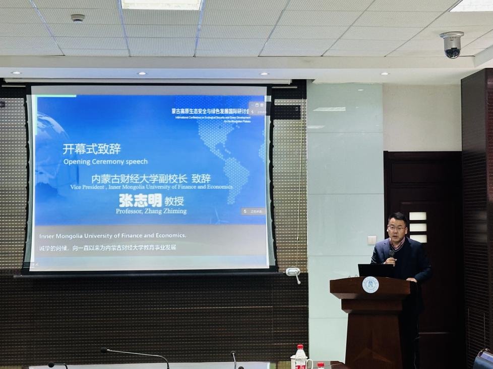開幕式上,內蒙古財經大學副校長張志明教授致辭,對遠道而來的專家學者表示熱烈歡迎。他指出,蒙古高原作為北方重要生態安全屏障,其生態安全與綠色發展不僅關乎區域民生福祉,更對國家生態戰略與全球生態治理具有重要意義。此次研討會搭建起國際交流合作平臺,既是推動學術創新的重要契機,更是助力蒙古高原生態保護與綠色高質量發展的實踐之舉。